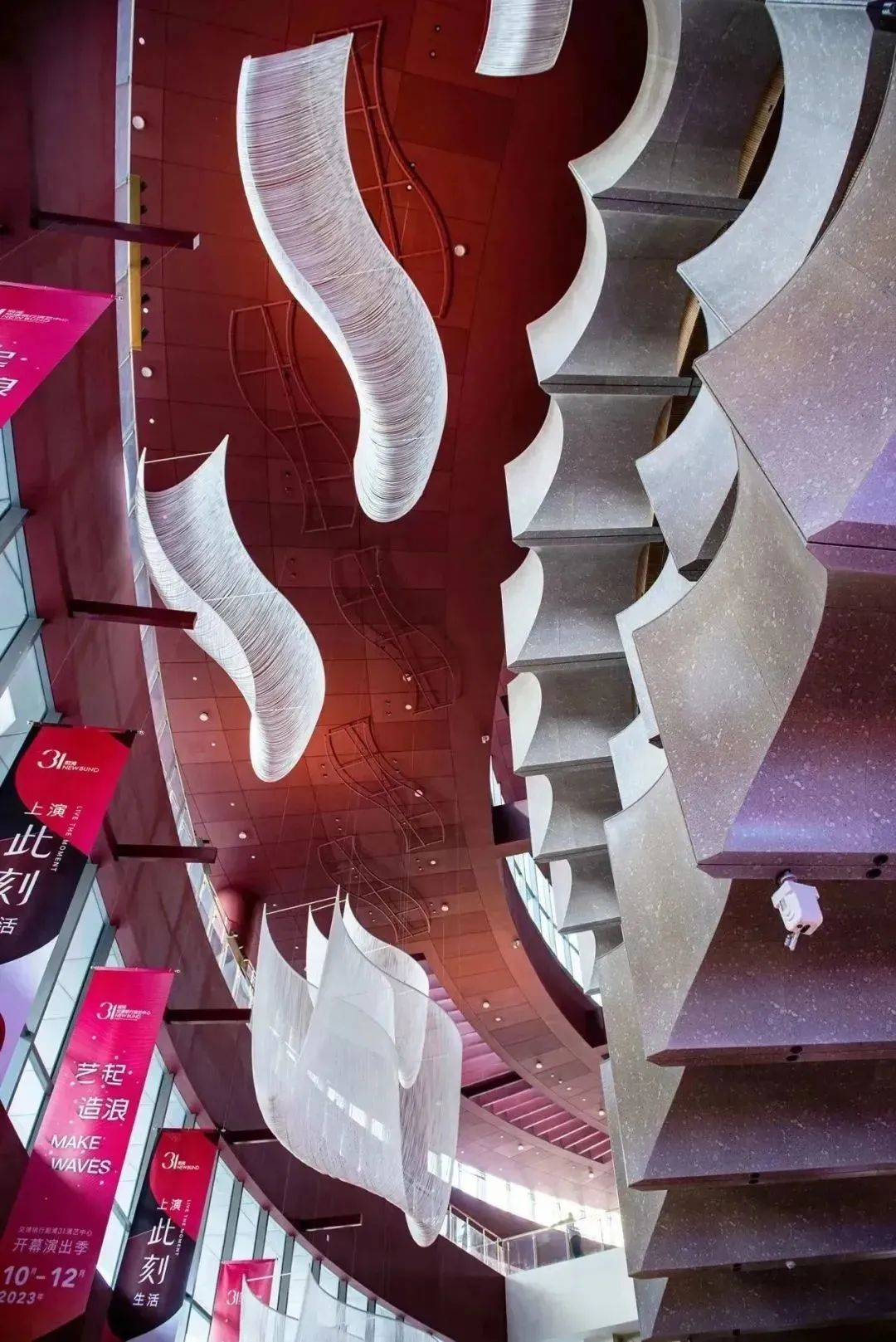 驻足在演艺中心大厅,仰望足足有五层楼高的中庭空间时,有一种难以描述的震撼。弧线拱起之形,庄重不压抑,典雅不浮华,营造了空间上的仪式感,中庭也仿佛化作另一重舞台,等着你我去探索。