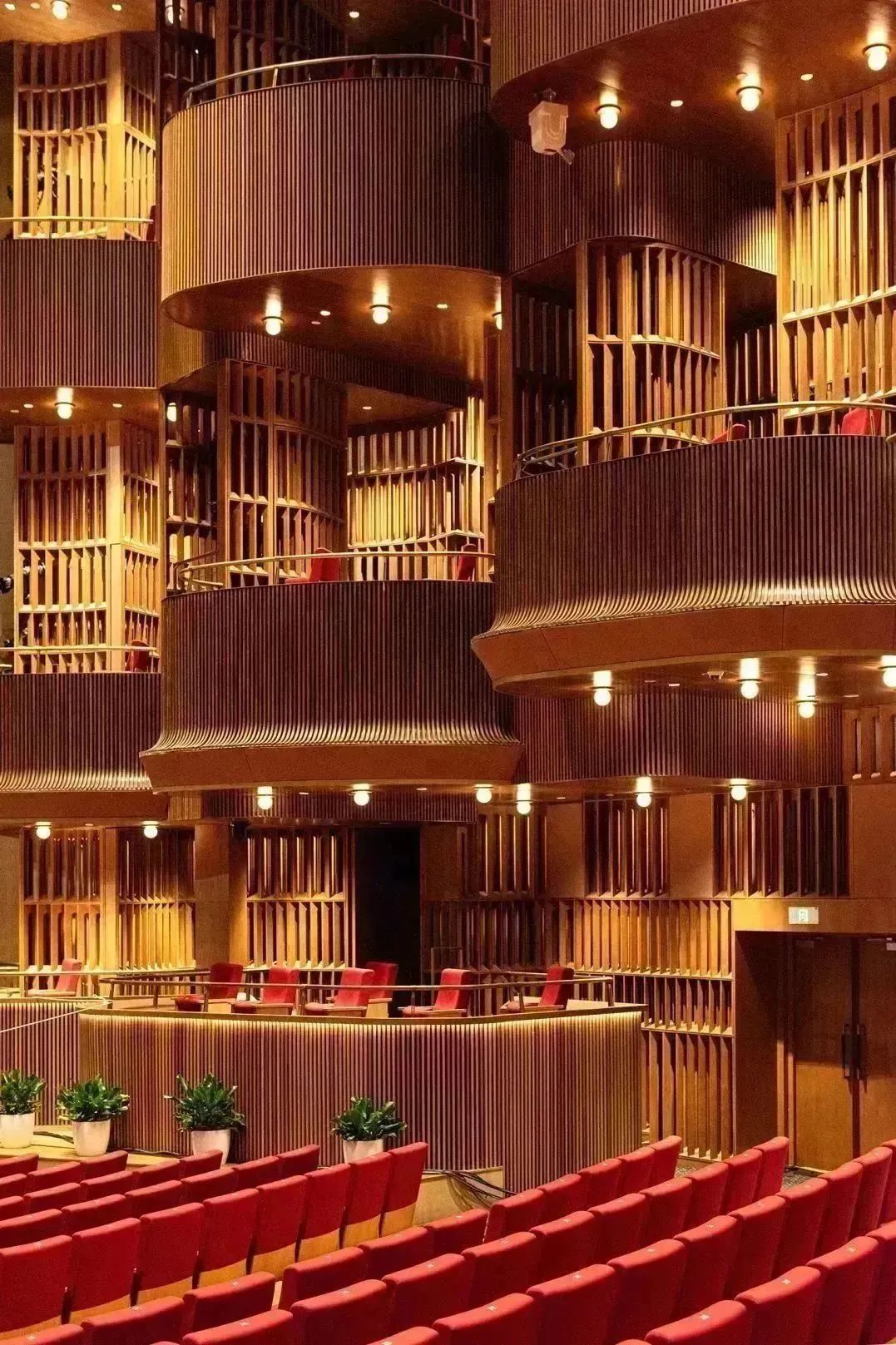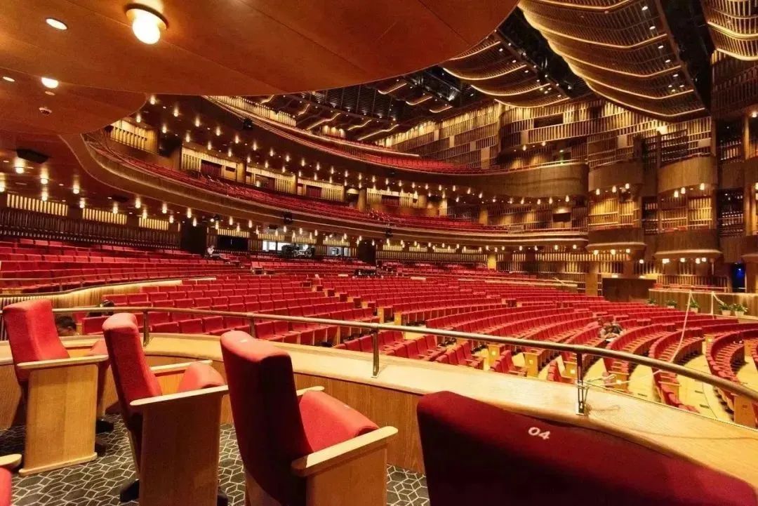 从艺术感十足的连廊步入大剧场,这里挑高二十余米,坐拥2500座世界级室内剧场,暖色调的橡木环绕整个表演厅,三层观演与阳台坐席,VIP包厢隐藏其间,勾勒出震撼的视觉效果。