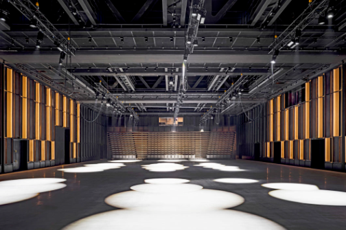 除了大剧场,1500平方米的黑匣子展演空间不得不提。一个按键,392座可伸缩移动、错落有致的座椅便可如潮水般铺陈与收回;区域上39台链式吊机,两组可移动式隔音板,可以将场地分隔成三个独立区域,每一部分都配有独立控制室、音响及灯光系统。