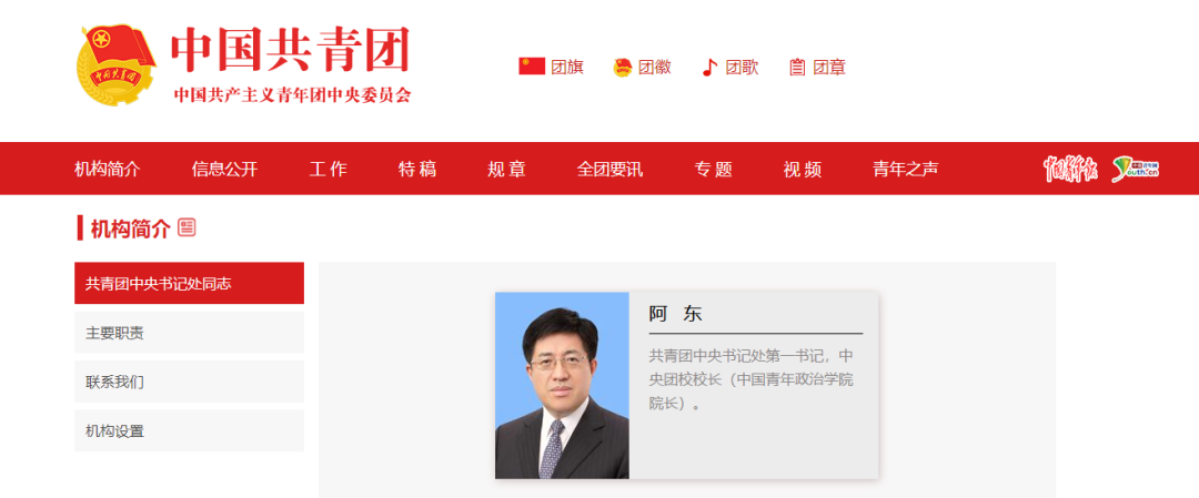 今年5月份,中国共青团官网显示,阿东已任共青团中央书记处第一书记。