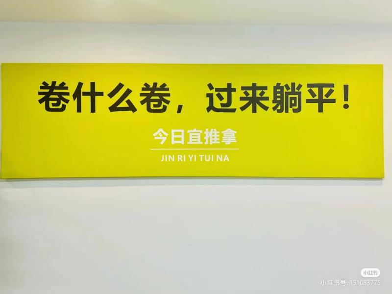 朵朵说,她是在网上团购了套餐券后到线下店面体验的,整个店铺面积不大,但环境非常干净整洁,装修简单轻快,有些地方还写着一些如“赶快躺平”的网络文梗,整体布置就让她感觉很轻松。