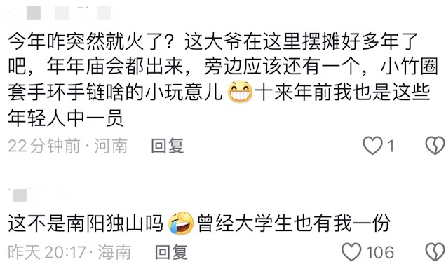 该工作人员称,目前乔大爷在山上租了一个木屋,做了点小生意,同时也会摆摊套圈,“他就在山顶电视塔后院墙外头摆的摊,直接顺着台阶路上到山顶的话,就能看见他。”