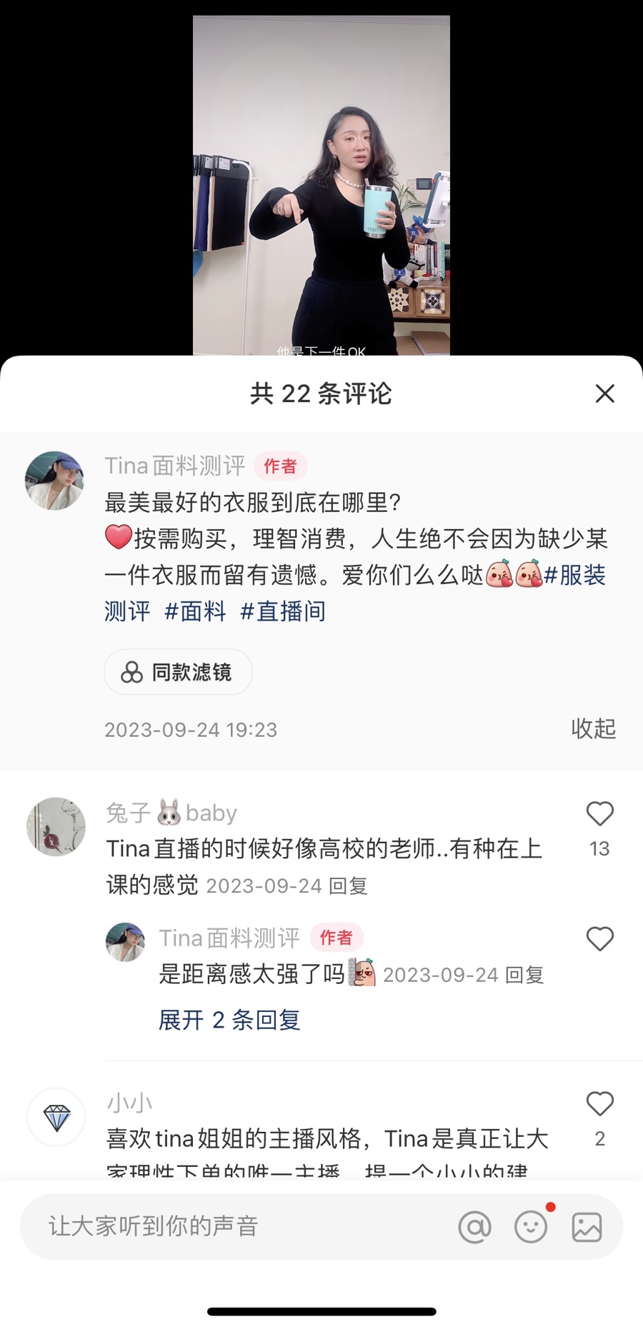 “作为买手最大的价值,就是帮助粉丝形成‘心里那杆秤’。”在知识“解码”过程中,她逐渐在中高端面料这一垂直领域,收获了一批具有黏性的粉丝。其中,既有来自金融、互联网等行业的职场女性,也有追求品质的家庭主妇。