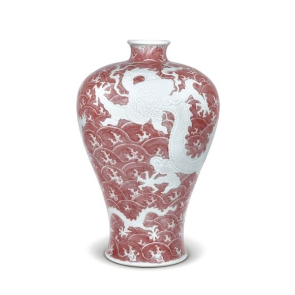 清雍正“釉里红波涛锥拱苍龙教子图梅瓶” 主办方提供