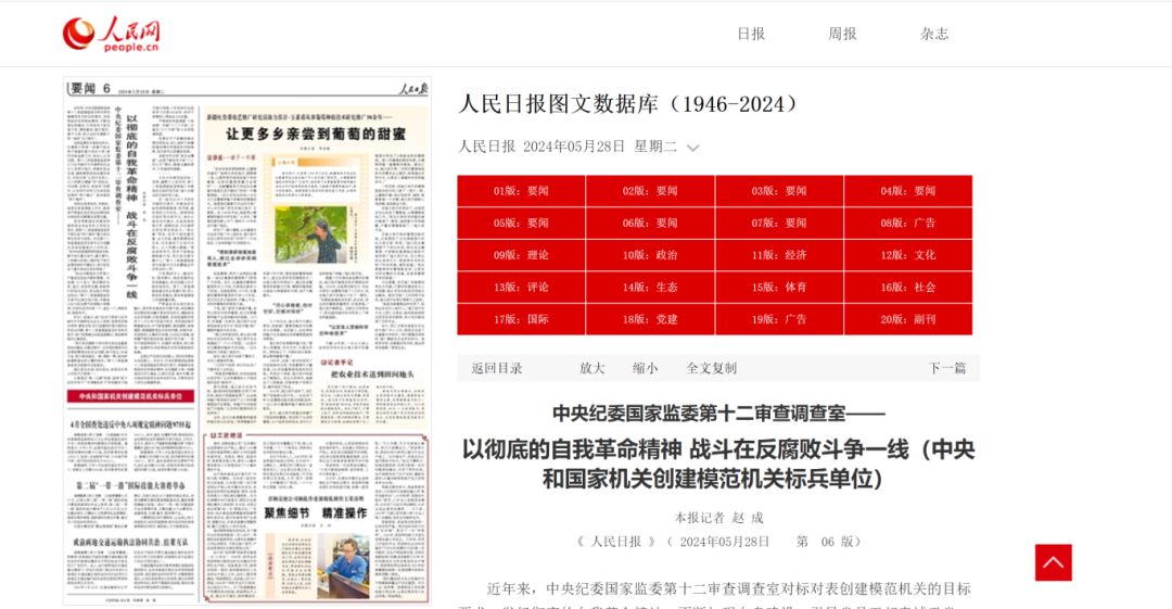 5月28日出版的《人民日报》刊发了题为《中央纪委国家监委第十二审查调查室——以彻底的自我革命精神 战斗在反腐败斗争一线》文章。