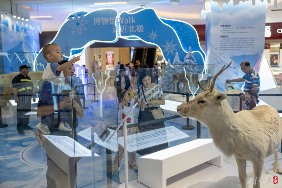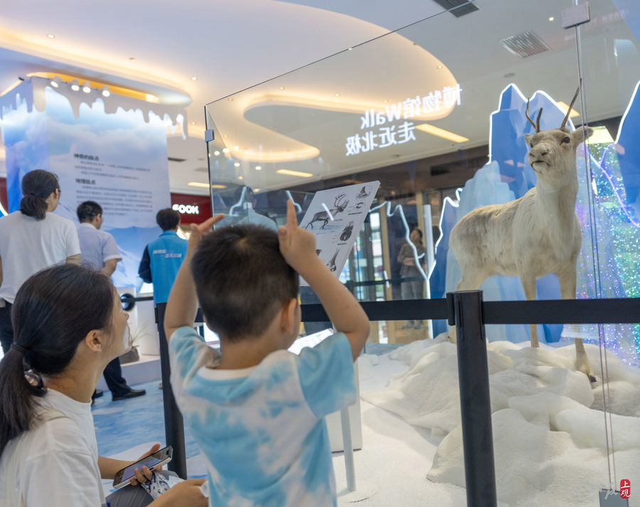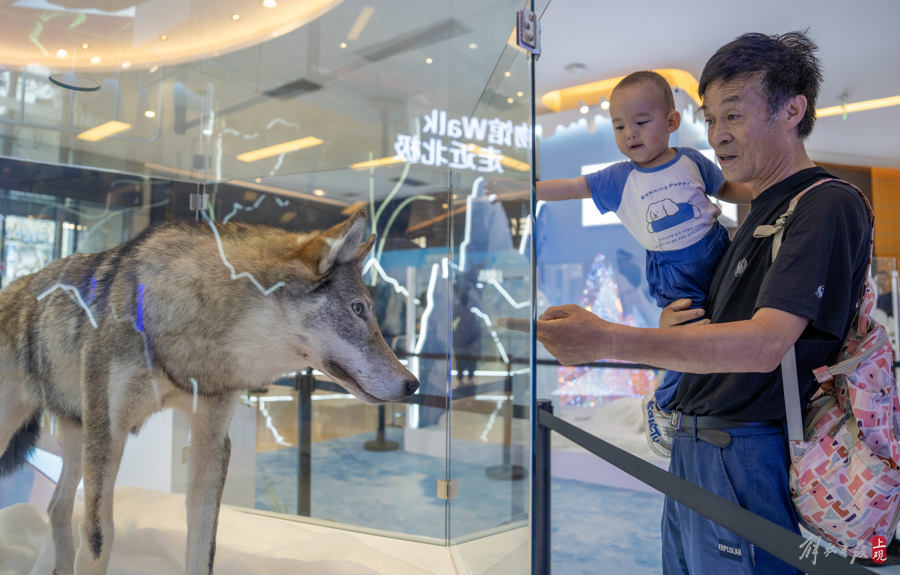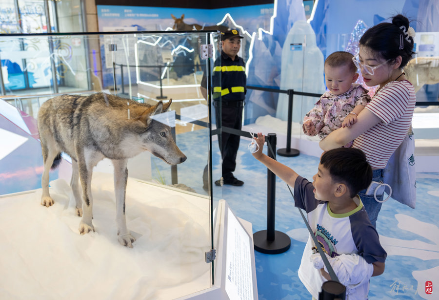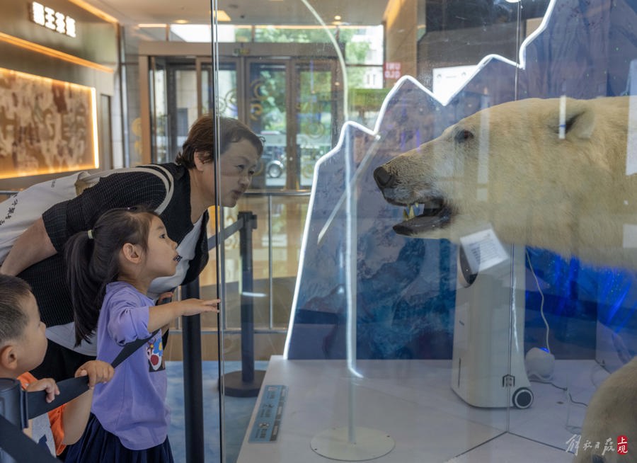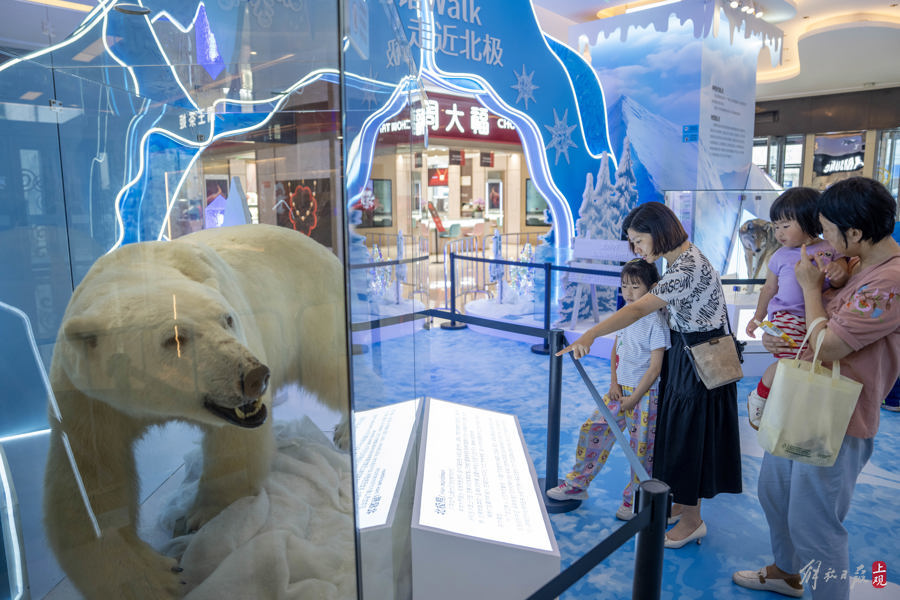 2024年6月28日,北极熊、狼、驯鹿等广受公众喜爱的极地珍稀动物标本落地商圈,向公众展出。这是上海自然博物馆(上海科技馆)珍贵藏品首次走进商圈。