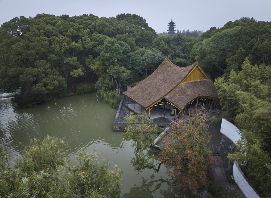 冯纪忠后来说,斋可以没有,但几片墙还是要有的,它们会形成空间的延伸,从茅草棚延伸到水的彼岸。