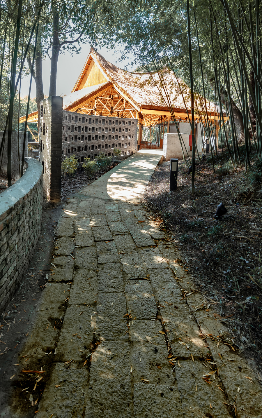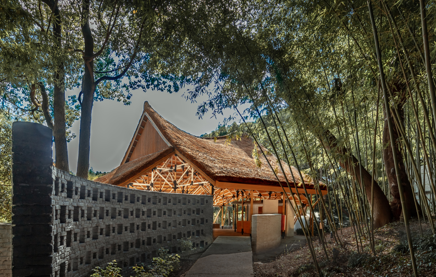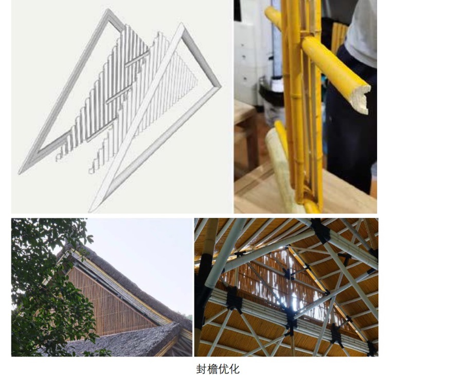 最后从“逸散”角度,选了如今的品种,它没有欧洲茅草那么挺括,但又有厚度,与竹子尺度匹配。不过,当屋顶茅草厚度增加到30厘米时,屋顶的结构、整体细节比例都需要同步调整。