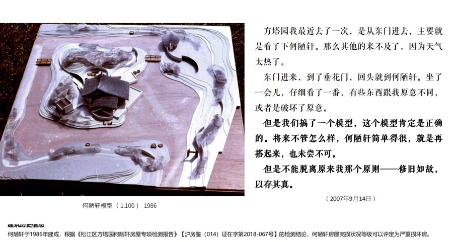 但是何陋轩本身就是一个过程,不是结果。冯纪忠也在不断修改,在晚年提出了一些建议。