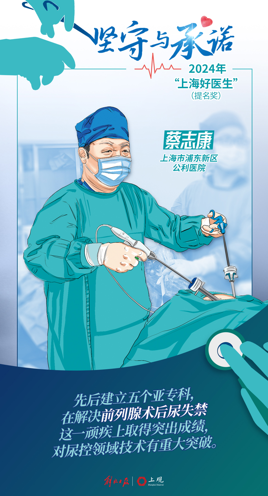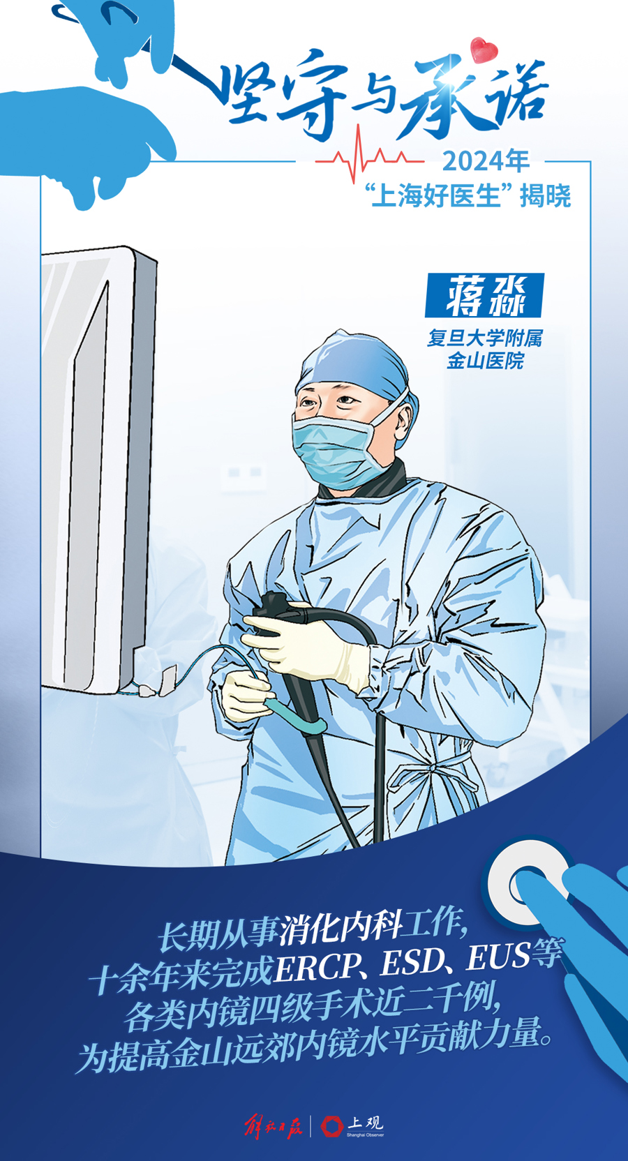 此次20位医务工作者荣获“上海好医生”,10位荣获提名奖。他们是上海医生群像中的佼佼者,其中有人坚持30年如一日,突破创新诊疗方案;有人每年个人手术量突破万例,牺牲业余时间为患者争取生命;有人通过科研攻关优化方案,成为患者稳稳的“医”靠……