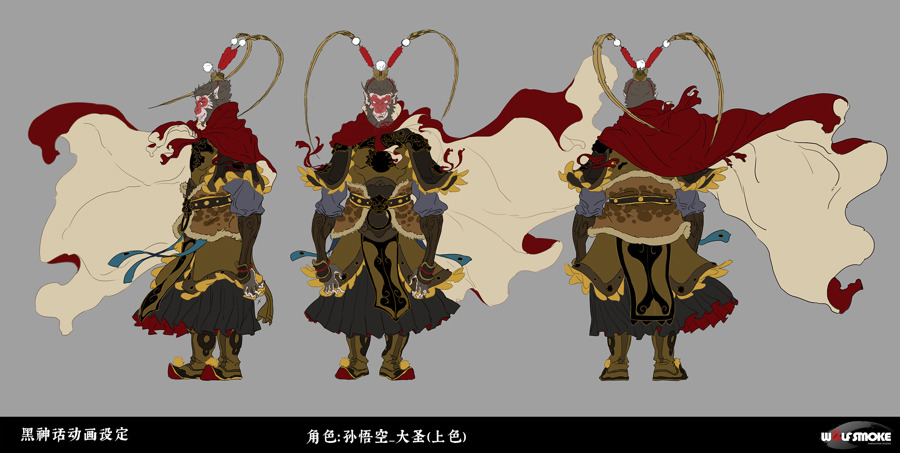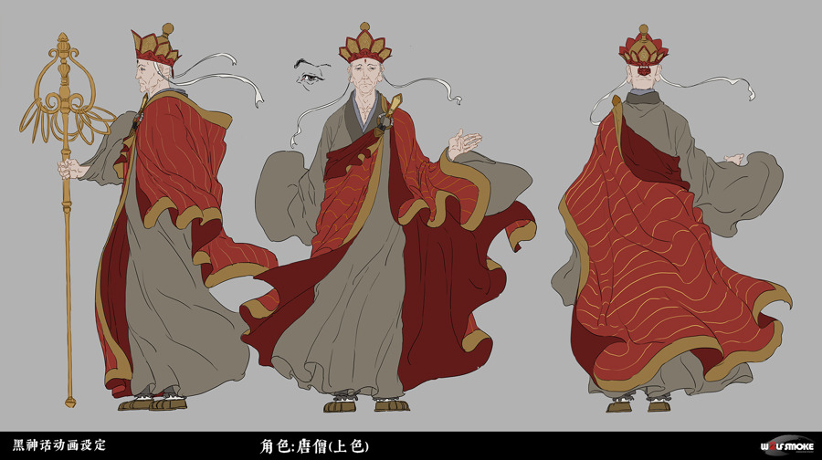“游戏科学是很好的甲方,他们很尊重我们的美学理念,除了必要的部分,修改意见不多,大家的审美还是比较一致的。”她记得调整较多的是沙僧和唐僧的形象,“唐僧的年龄感调整得更大了些,沙僧一开始我们设计的脸部形象接近夜叉,现在更像人类。哪吒的造型也调整得更传统了。”