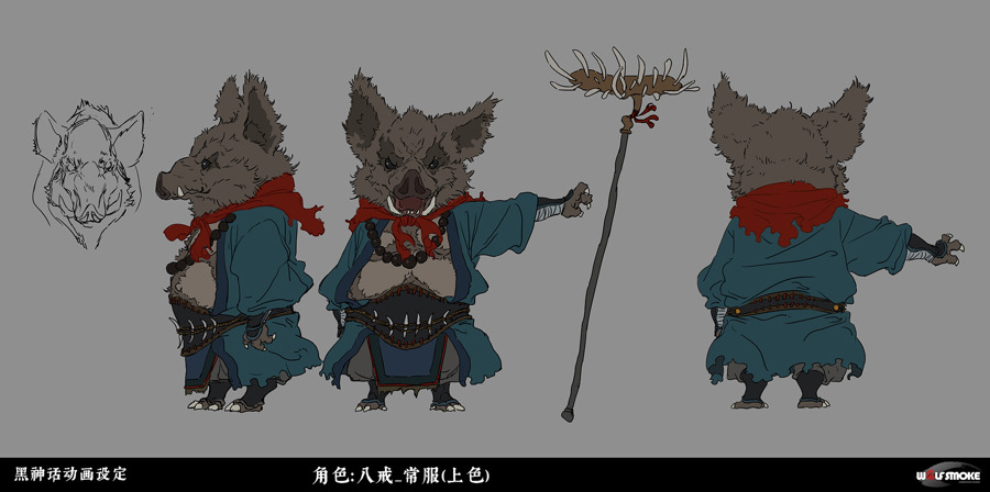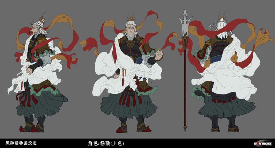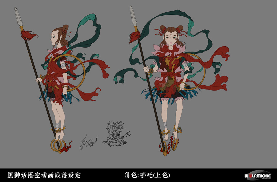有细心的网友发现,短片中二郎神的发色与游戏中不同,“其实当时游戏科学给的参考就是白色,因为游戏中相关场景的光照环境下白发材质很难兼容,临时替换为黑色。”无言介绍,短片中约有一半以上的角色在游戏中没有出现,即使是二郎神、孙悟空等游戏中出现的角色,游戏科学会给出原画设计形象参考,但变成二维设计仍需要大幅调整修改,至于唐僧、沙僧、哪吒等没出现的角色,则由狼烟自主设计。