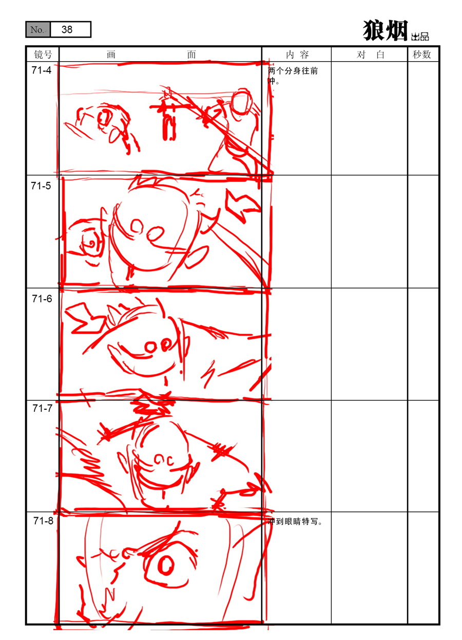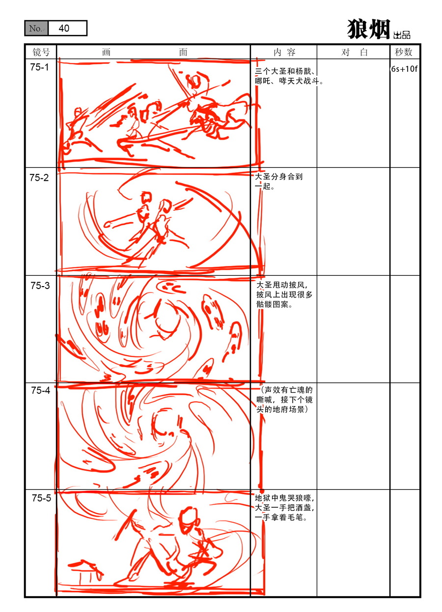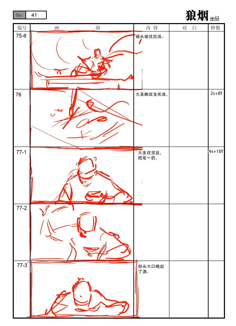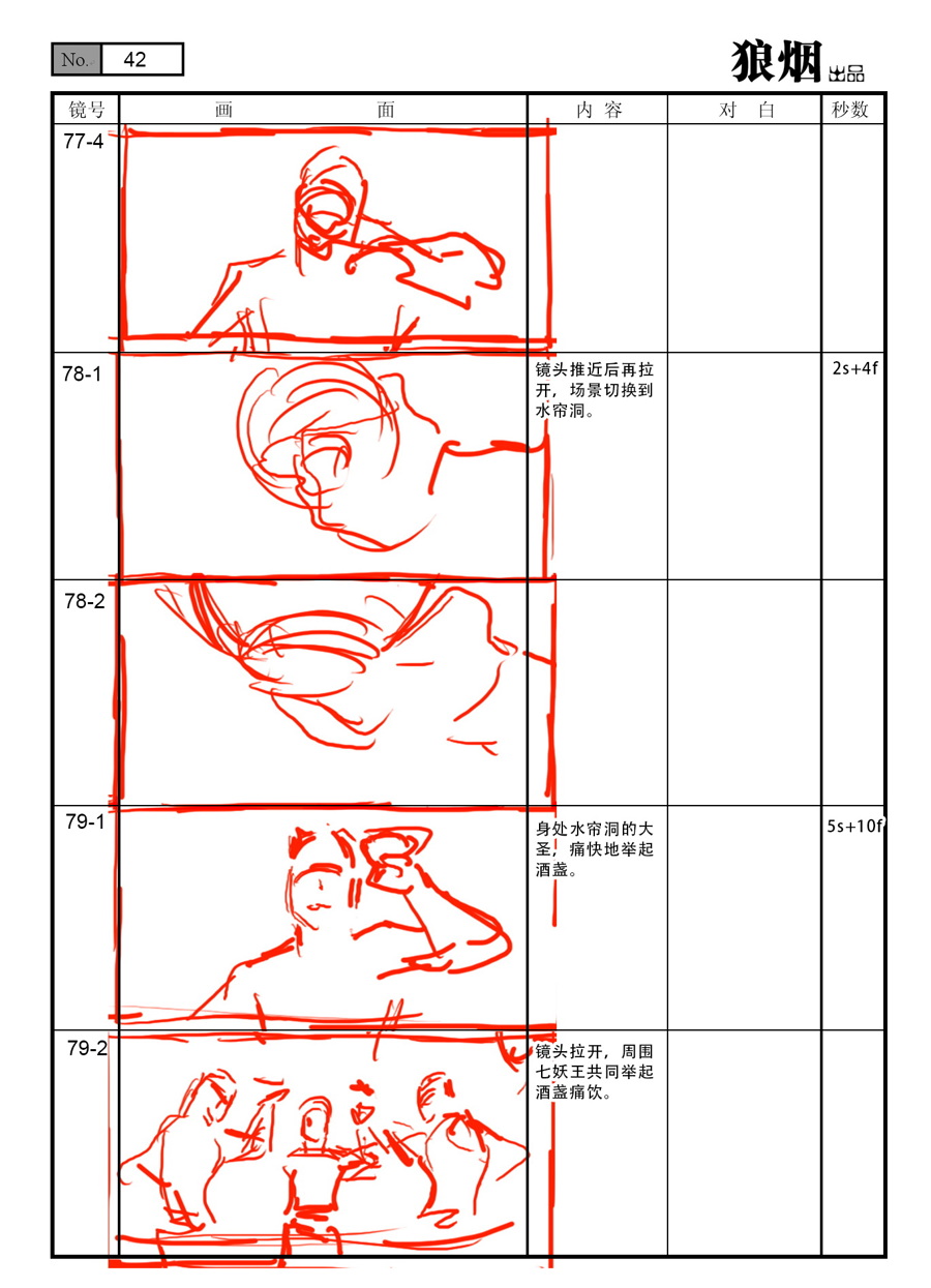 无言介绍,游戏科学提供了《西游记》原著中的多个章节,双方一起讨论、选择适合在短片中呈现的部分。因为镜头切换快,需要能让观众一眼看出画面在说什么,发现有不合适的就重新挑选、修改顺序,分镜草图直改到第6版才确定下来。“我们在分镜上花了大约三到四个月时间,制作开始后,根据需要还会陆续调整。动画创作中,几个步骤会同步推进,修改分镜时,角色设计、场景也在制作,工作表是互相叠加的。”