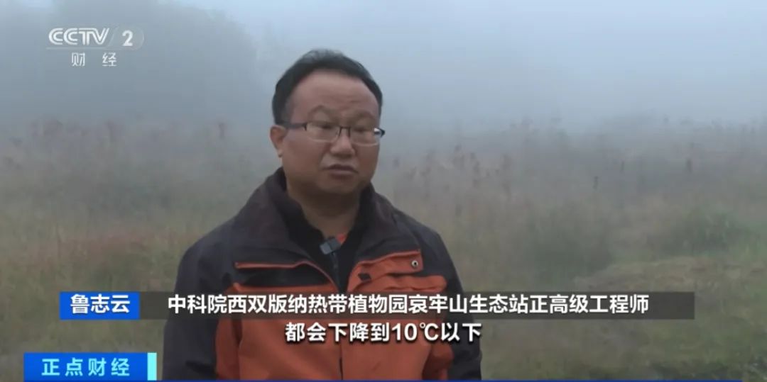 中科院西双版纳热带植物园哀牢山生态站正高级工程师 鲁志云:山上的温度晚上基本上都会下降,哪怕到夏天都会下降到10℃以下,尤其是下雨的时候,可能会接近0℃。在野外,温度低就容易导致人失温。