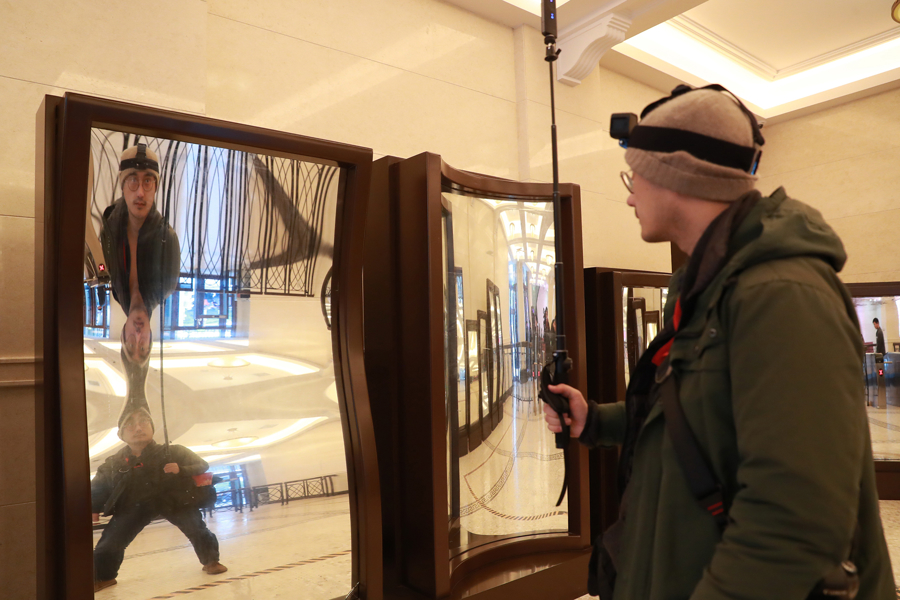 市百一店门口的哈哈镜。2016年12月28日,拍摄修葺一新的百年大世界重新开门试营业。本报记者 海沙尔 摄。