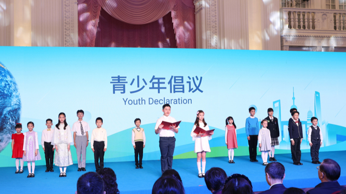 两位来自中福会少年宫的中外青少年学员携手全国20余名青少年,代表少年儿童发布“联合国中国青少年环境大会上海行动方案”:珍爱地球,守护家园;节约能源,绿色生活;环保出行,绿色消费;垃圾分类,保护环境;宣传环保,践行低碳。