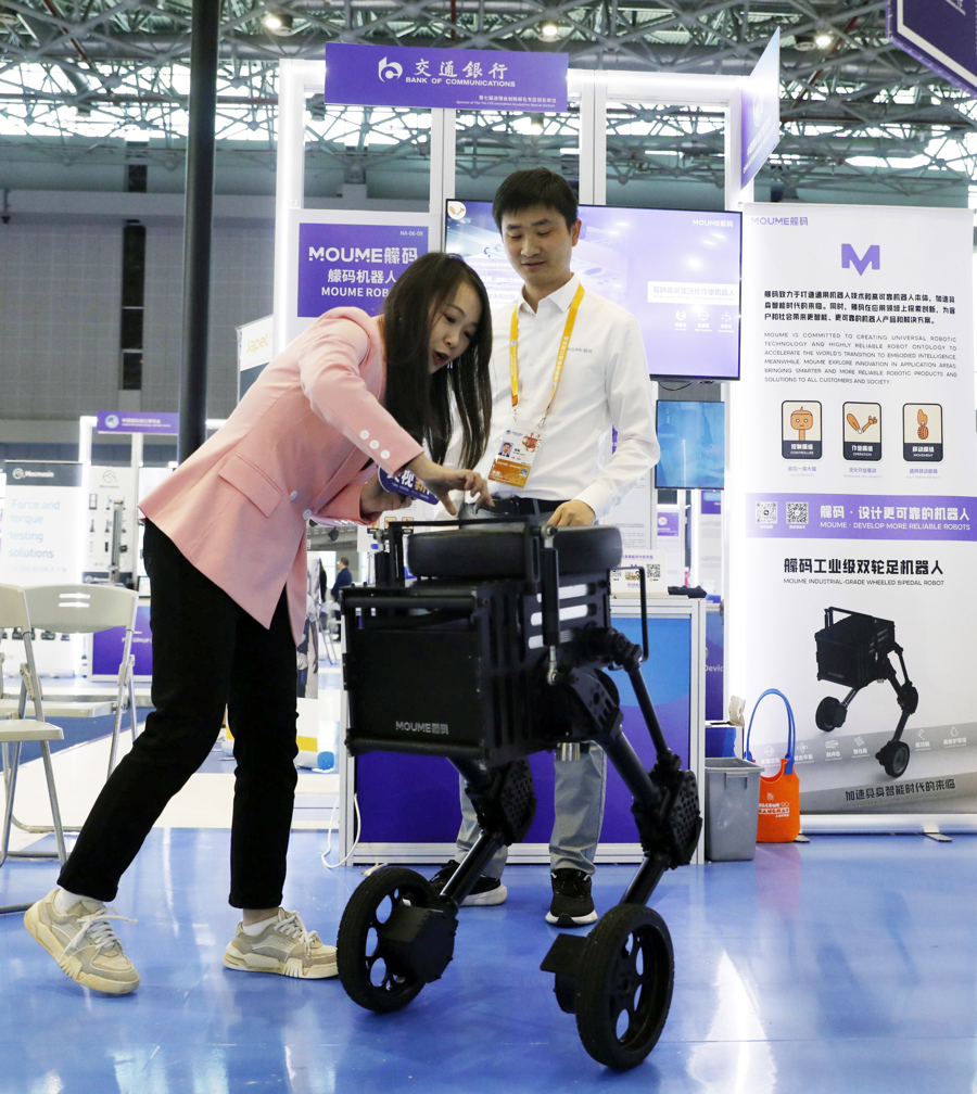 艨码科技即将全球首发的智能机器人“行影”,带有双轮的它不仅能在平地上平稳疾驰,还能“下蹲”蓄力跳跃,在非平坦路面的作业应用于载物和巡检等场景。
