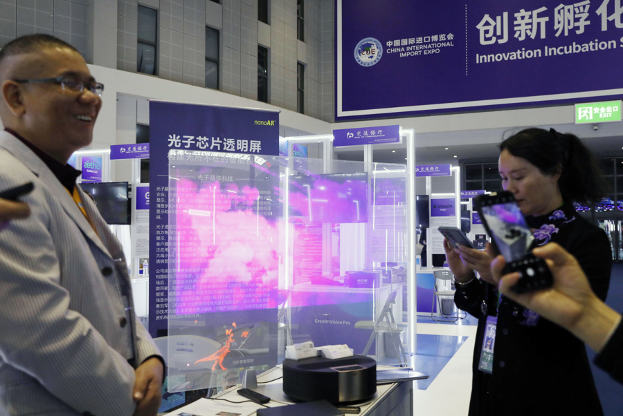 2024年11月5日,第七届中国国际进口博览会创新孵化专区,今年招展作了升级,以“跨越边界,聚力创新”为主题,规模和质量实现了新的突破:首次聚焦数字经济、绿色低碳、生命科学、制造技术四大赛道进行策展,集中展示360个创新项目,包含埃森哲开放式创新、英国EGG孵化器、在华韩国创新中心等多家国际创新孵化平台首次组织初创企业参展。