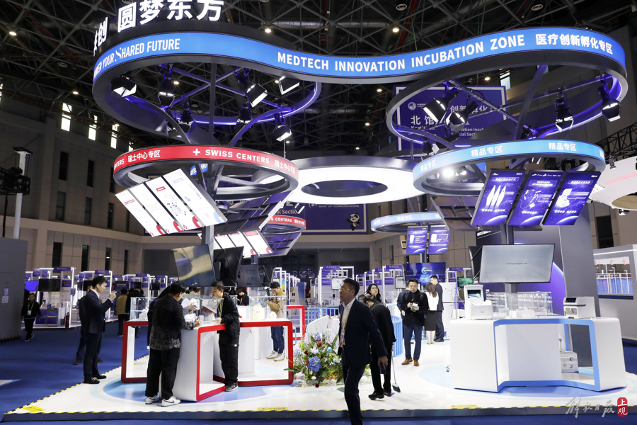 瑞士中心群星荟萃的组合展区,展示40款来自全球企业的医疗创新技术及产品,涵盖医美整形、眼科医疗、体外诊断技术、呼吸系统疾病治疗、血液透析设备以及心血管健康等多个专业领域。