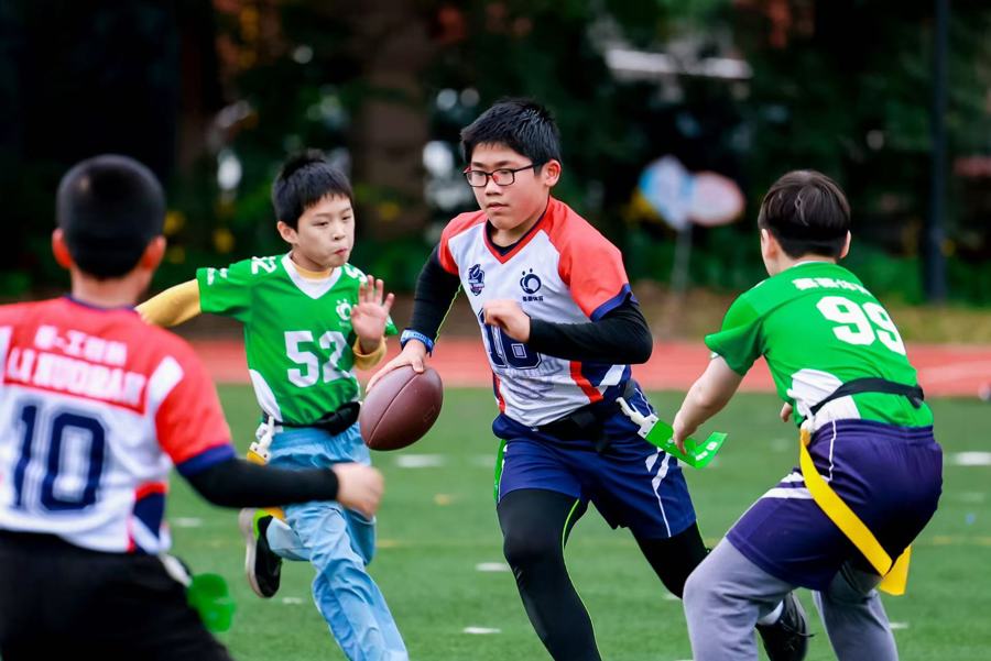 11月16日,2024年闵行区青少年腰旗橄榄球比赛暨“虹桥杯”学区化特色项目腰旗橄榄球秋季联赛在闵行区虹桥中心小学举行。比赛吸引了闵行区十余所学校和俱乐部积极参与,参赛队伍32支,参赛队员近300名。赛事秉承着趣味和竞技兼顾的原则,设置了橄榄球亲子嘉年华、技能挑战赛、1vs1单挑赛和正式腰旗橄榄球比赛四大类活动。