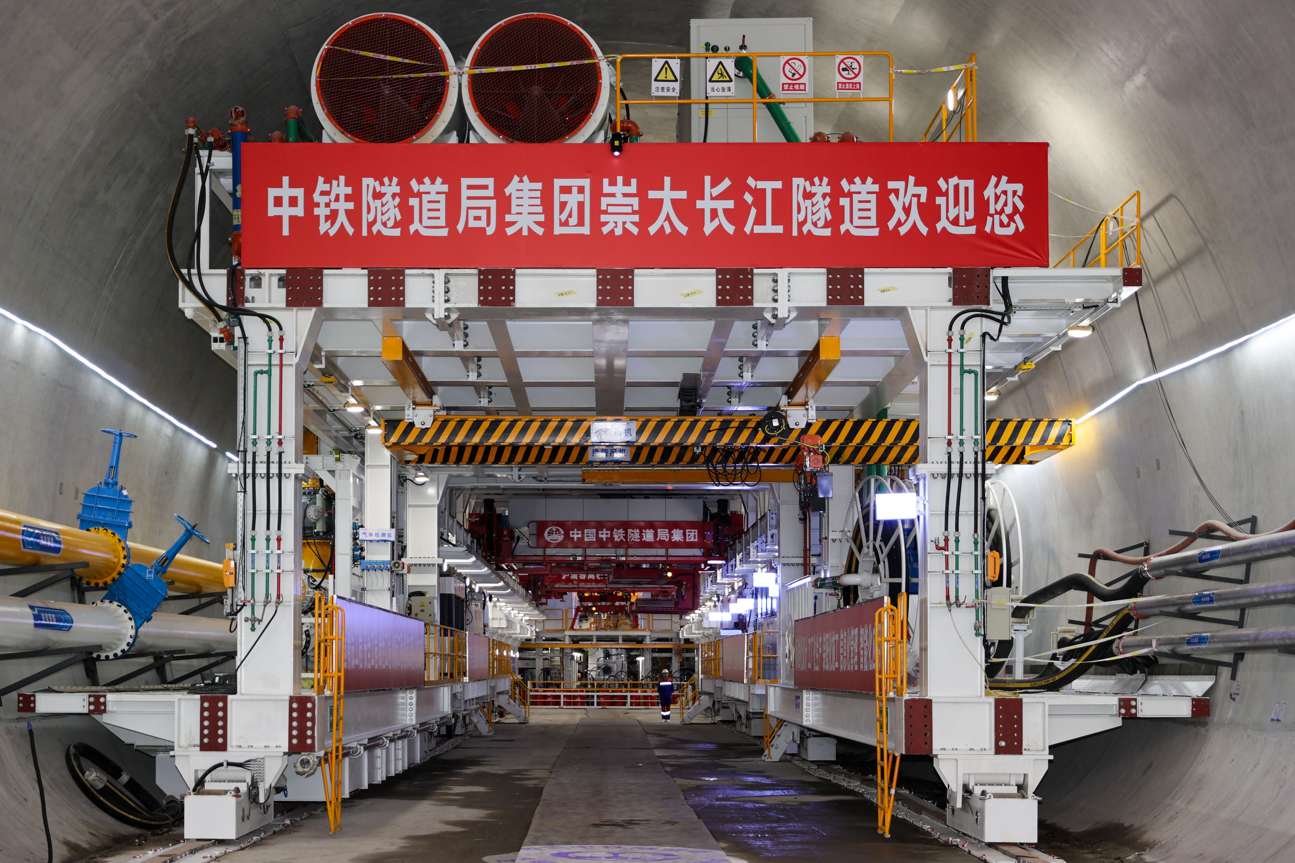 崇太长江隧道“领航号”盾构机内景。新华社 图