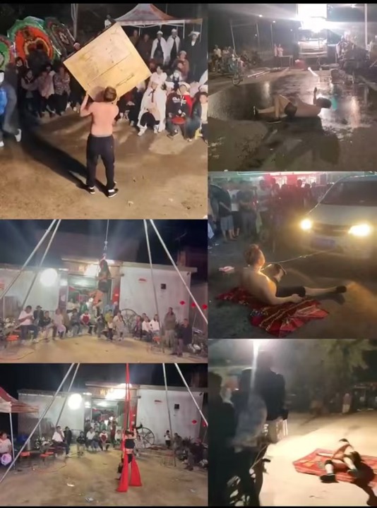 在社交平台上流传的许多乡村杂技表演视频中,主持人会在中途提高分贝、煞有介事地强调杂技演员是在没有任何防护措施的情况下表演的,由此衬托演员的技艺精湛。