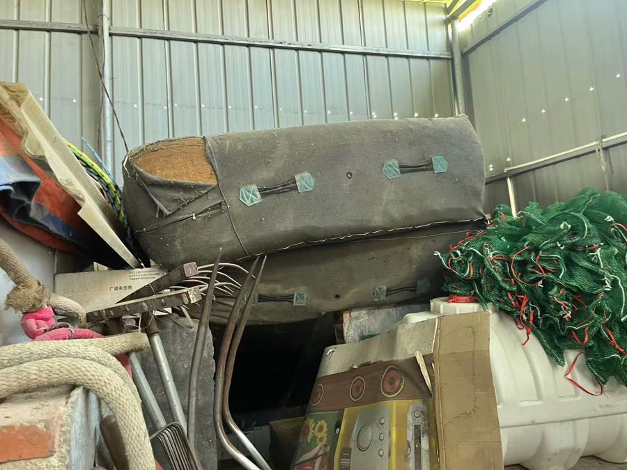 朱浩家中,已经弃置不用的高空杂技防护垫。 杨书源 摄