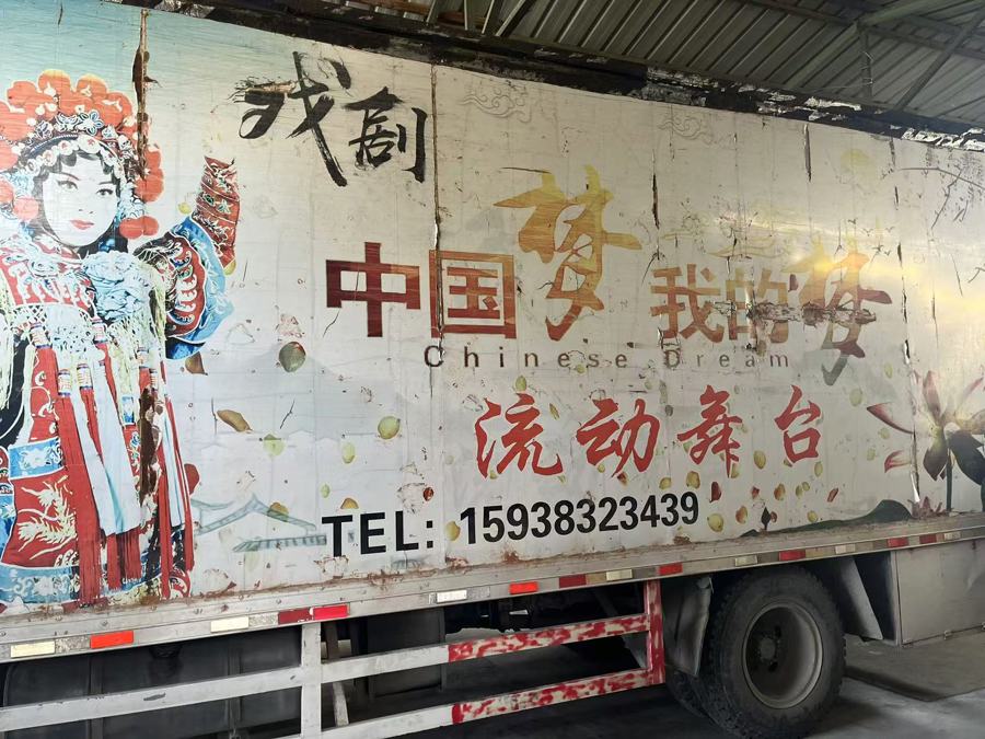 陈客侠家花十几万元买的流动舞台车。 杨书源 摄