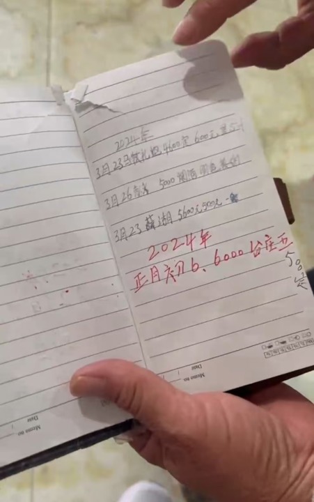 一位乡村“团长”在笔记本上记录的自己的演出安排和价格。 杨书源 摄