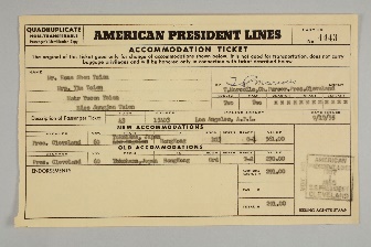 “克里夫兰总统”号邮轮上补一等舱票据。