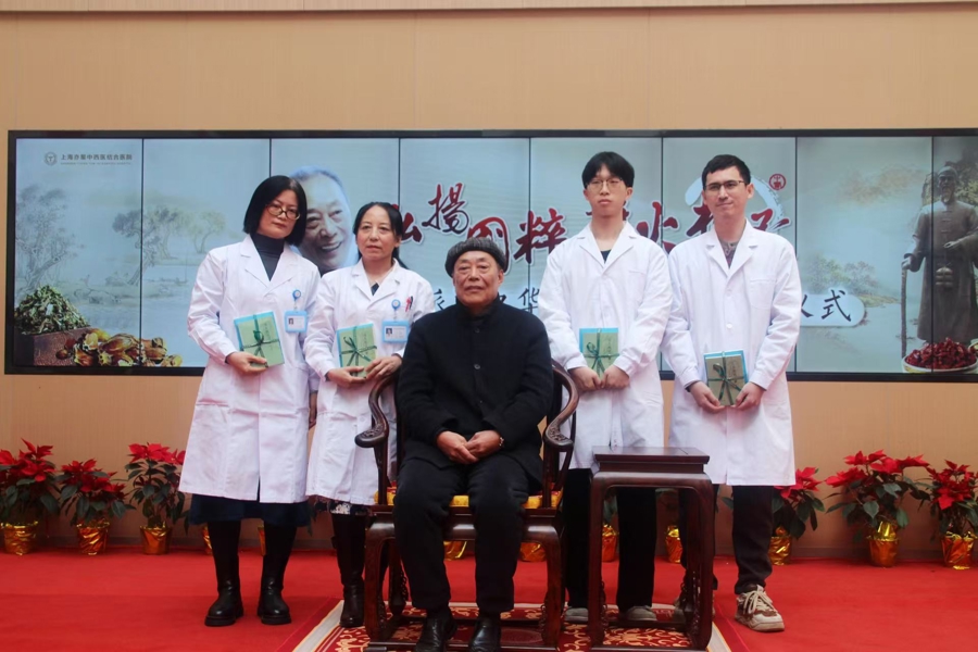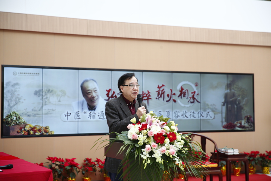 中医输通学派医师夏容授徒拜师仪式日前在上海亦星中西医结合医院隆重举行,张丽莹、段昀、盛朱辰、徐雯超四位传承人拜夏容为师。通过诵读拜师帖、参行拜师礼、奉敬拜师茶等传统礼数,表达尊敬和感激,也表明立志研学的决心。夏容则以《药性赋》、《汤头歌》两本中医古籍向弟子回礼,确认建立师徒关系。