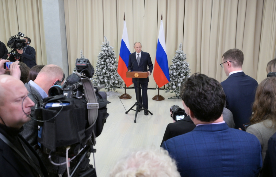 当地时间12月26日,俄罗斯总统普京在欧亚经济联盟最高理事会会议后与记者见面时表示,俄罗斯正努力结束与乌克兰的冲突。