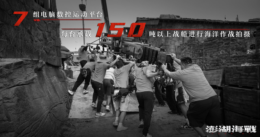该剧组同时自主研制了国内目前最大的7组电脑数控运动平台,每台均能承载150吨以上战船进行海洋作战拍摄。郑保瑞称,这些一比一复刻的古战船、露天大棚还有动态模拟运载平台虽耗资不菲,但为了还原“澎湖海战”真实性和残酷性,这些拍摄条件是必须的,无论多难都得有效解决掉,“还好,这些都实现了”。