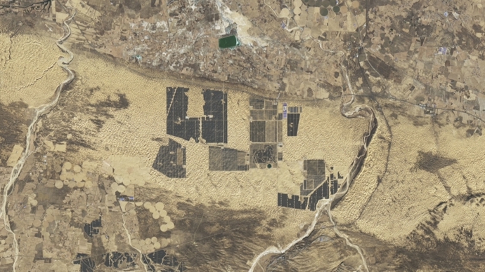 NASA介绍,这是中国“太阳能长城”工程的一部分,旨在产生足够的能源为京津冀地区供电。相关项目预计到2030年完工,将在黄河南岸用太阳能板筑起一道长约400公里、平均宽约5公里的“蓝色防沙区”。据悉,预计最大装机容量为100吉瓦,截至2024年9月,装机规模已达5.4吉瓦。
