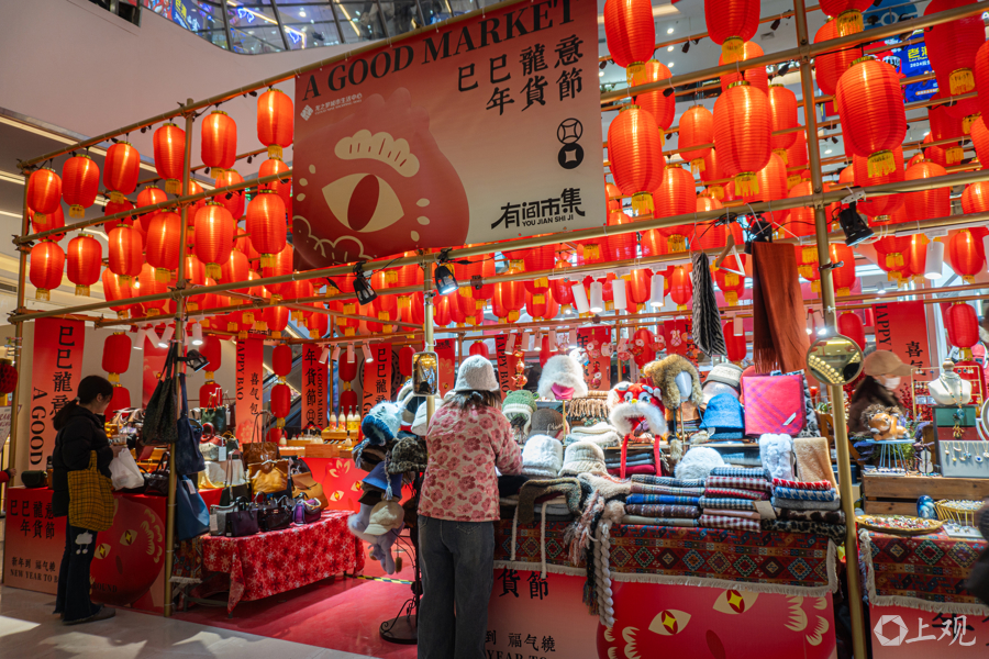 市民在商场年货市集挑选心仪的商品。