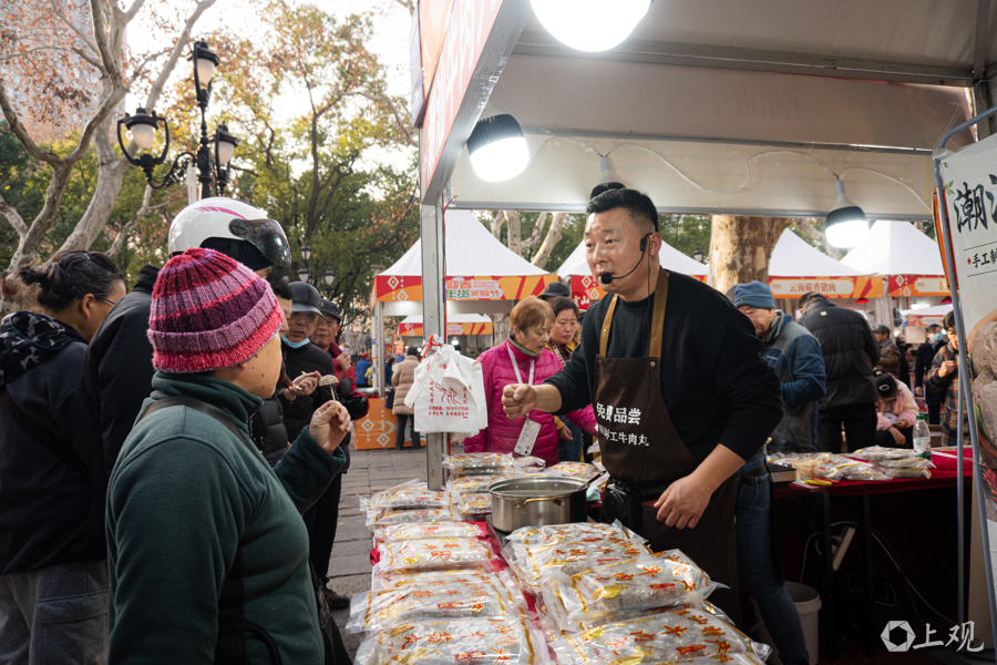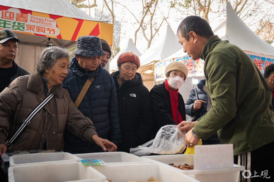 鲁迅公园内,热闹的年货节也为寒冷的冬日增添了温暖。年货节持续10多天,从早到晚人气十足。各种摊位前人头攒动,挑年货的同时还可以讨价还价,有种久违的市井烟火气。