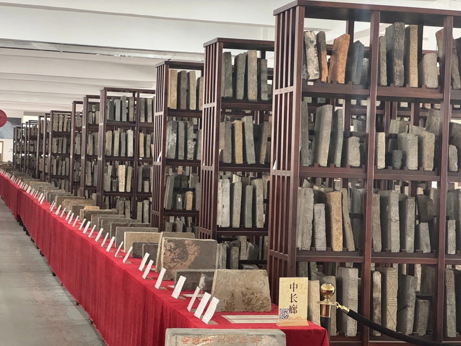 走进明止堂,展出的砖石整齐摆放在展厅内,根据年号砖、记事砖、吉语砖和画像砖几大主题有序排列,上方展示对应的拓片,清晰展现出每块字砖的信息。
