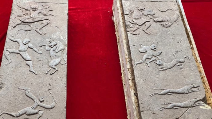 记者了解到,这对汉代神荼·郁垒画像砖是第一次向大众“掀开面纱”。明止堂中国字砖馆馆长朱明歧介绍,根据图案等细节考据,推断其制作于西汉末年到东汉年间。