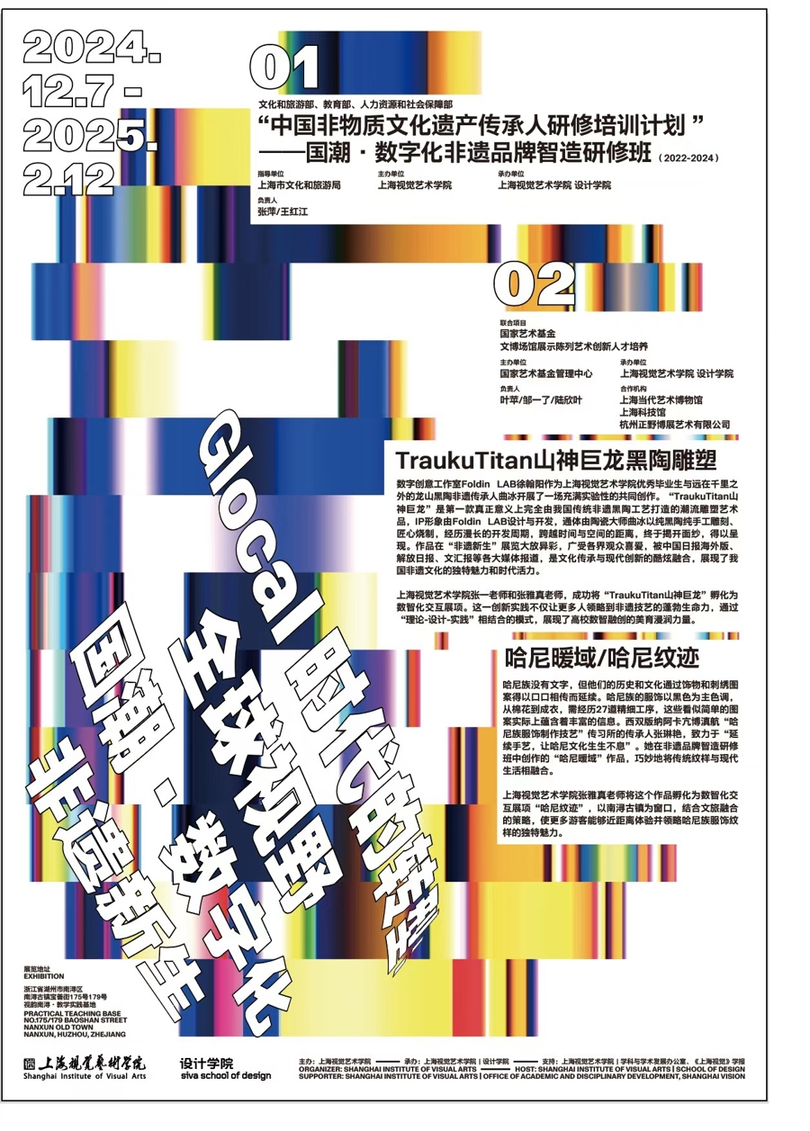 在这片充满古韵的土地上,上海视觉艺术学院在宝善亲子街正式启用了“视韵南浔”教学实践基地,并在此举办了主题为“Glocal时代的转型:全球视野,本地共创”的展览。展览通过生动呈现如何将传统非遗文化与数字化、互动化的现代元素融合,展现了这座历史名镇在新时代下的文化转型与创新探索。
