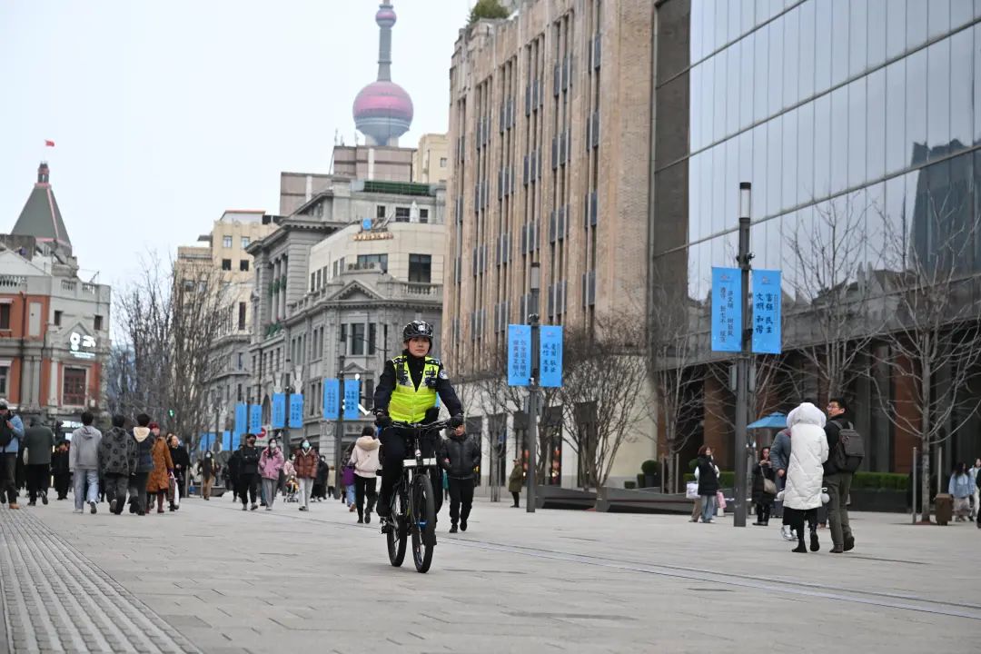 根据客流情况,南京路步行街管理中队会采用电瓶车巡逻和自行车巡逻两种巡逻方式保障市民游客的安全。其中,自行车巡逻已成为南京路步行街一道崭新的、亮丽的风景线。