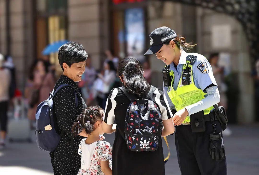 在南京路和外滩,徐懿最常遇到的是问路和寻人等求助类的警情。徐懿随身携带的包里,总是放着好几根棒棒糖,“南京路客流量大,有时候小朋友走失,面对陌生情况会慌乱到无法交流,我就会给他一根糖,慢慢安抚情绪,再试试看能不能问到家长的电话号码。”
