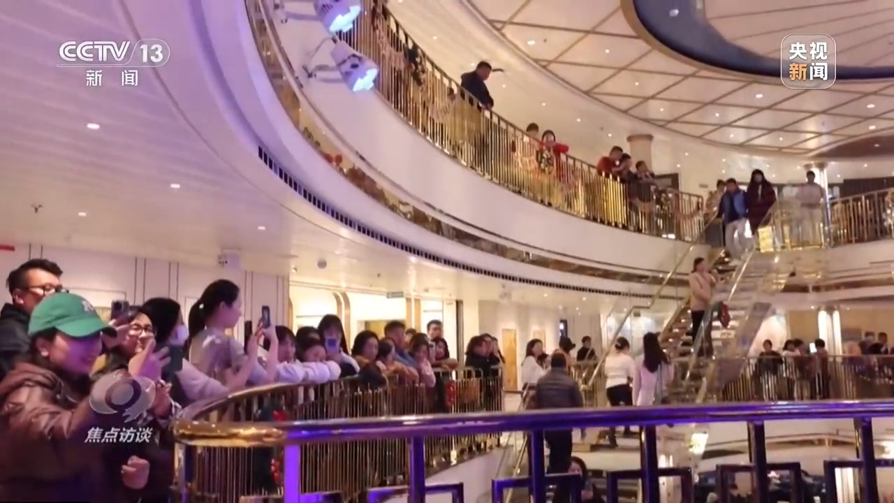 在海上,中国首艘国产大邮轮“爱达·魔都”号,身披“闪耀中国红”的涂装,展开蛇年新春主题航次,精心设计的娱乐项目打造出海上的中国年味。