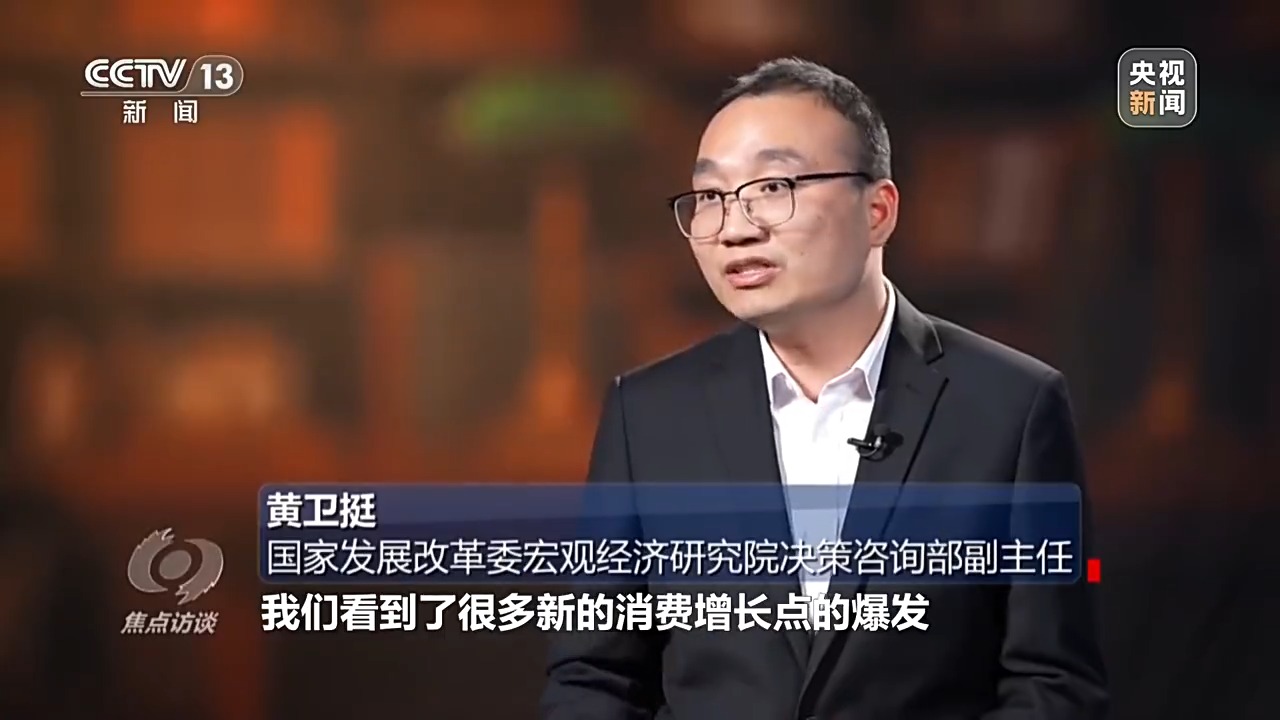 国家发展改革委宏观经济研究院决策咨询部副主任 黄卫挺:春节消费是整个经济社会发展的集中呈现,我们看到了很多新消费增长点的爆发,更加多元的消费需求,它背后其实有一个支撑,那就是中国幅员辽阔的国情特征和我们作为全球第二大经济体的规模效应,它能够为多元化消费需求提供更多可供选择的场景。