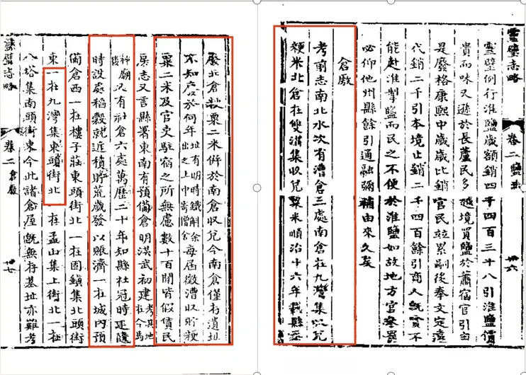 清乾隆《灵璧志略》:南北水次有漕仓三处,南仓在九湾集,以兑粳米……今南仓仅存遗址,址有明时铁斛出……每届征漕收貯粳粟二米及官吏驻宿之所无虑数十百间,皆假赁民房……又有社仓六处,万历二十二年知县杜冠时建……一在九湾集东头街北……
