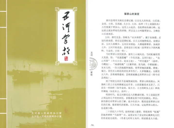 通过《五河掌故》了解到,五河口附近原有座土山,叫“翠屏山”,明朝初年,翠屏山的土石被运走筑城设衙而失去山形。