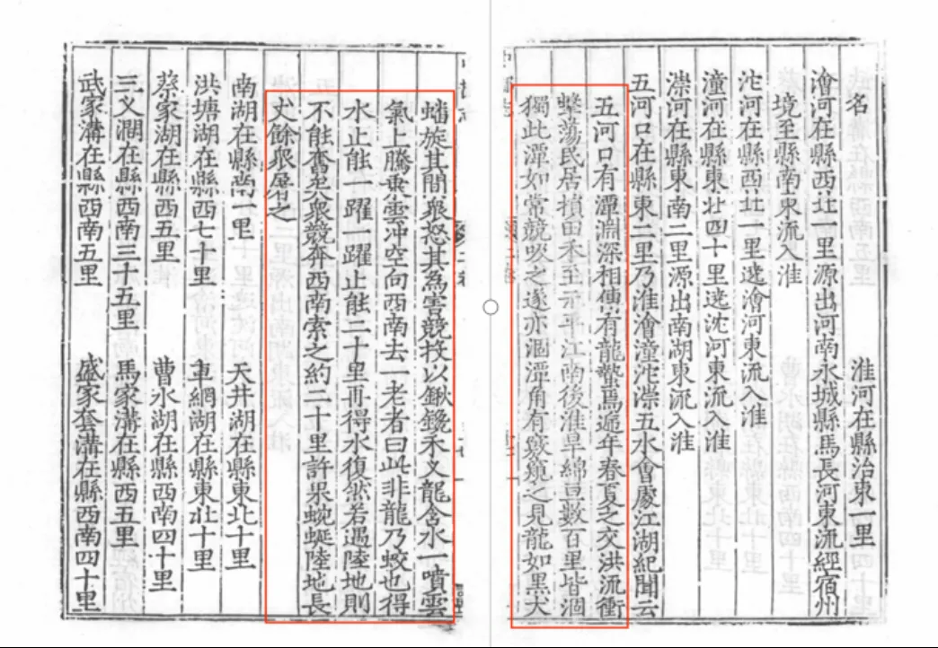 明成化《中都志》: 蟹河在(灵璧)县南八十里,自宿州经本县新马桥(九湾附近)东流入浍河。蟹河因盛产螃蟹而得名,后改写为澥河。上世纪80年代,澥河的螃蟹畅销美国、日本等地。明成化《中都志》记载五河县有赤龙涧桥。此外,民国时期的《五河县舆图》就在五河县城西侧标注:赤龙涧、龙潭湖、黑鱼沟,这些地方距离九湾都较近。