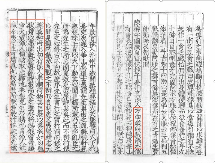 1487年出版的《中都志》第五卷《道释神仙异人附异端》中,这样介绍陈抟老祖:“抟莫知所出,初有渔人举网,得物甚巨,裹以紫衣,如肉球状,携以还家,溉釜焚薪,将煮而食之,暨水将热,俄雷电绕室大震,渔人惶骇,取出掷地,衣裂儿生,乃抟也。”