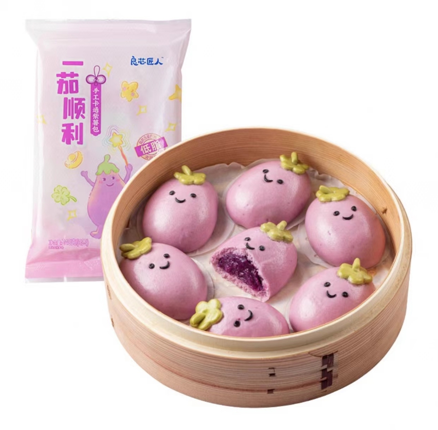 不仅是汤圆,创意花馍、卡通馒头等创意面食都有市场新机遇。在丰盛里的一家潮汕餐馆,活灵活现的醒狮包已经成为明星产品,尽管58元/只的售价可谓不菲,但冲着其精致造型和美好寓意,依旧有不少消费者点上一只打卡拍照。而在叮咚买菜上,则有一“茄”顺利紫薯包、手工熊猫奶黄包、咖小熊&粉小猪玉米水饺等卡通创意面点,其中两款包子的售价均为6只24.9元,明显高于普通产品。