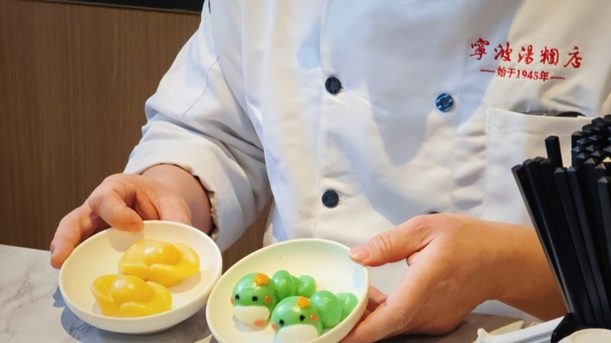 “蛇年生肖汤团不好做。因为蛇的身形是长条形,和汤团的圆形截然不同,既要把两者融合,还得让汤团造型可爱讨喜,是一个不小的挑战。” 宁波汤团店店长徐正留说,经过老师傅反复试验、不断改进,最终成功塑造出一对憨态可掬的青蛇宝宝汤团形象。
