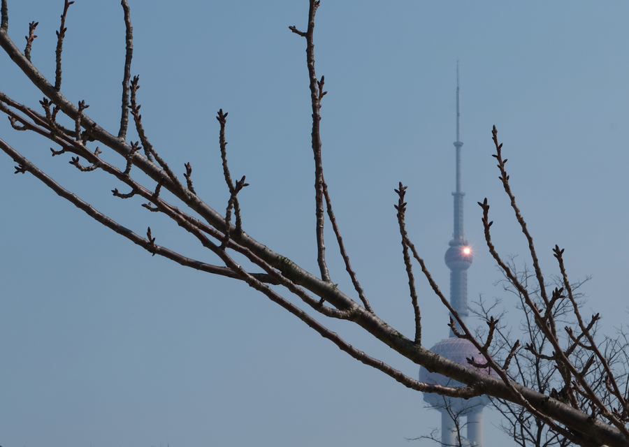 四川路桥旁的樱树孕育着一个个花苞,蓄势待发。